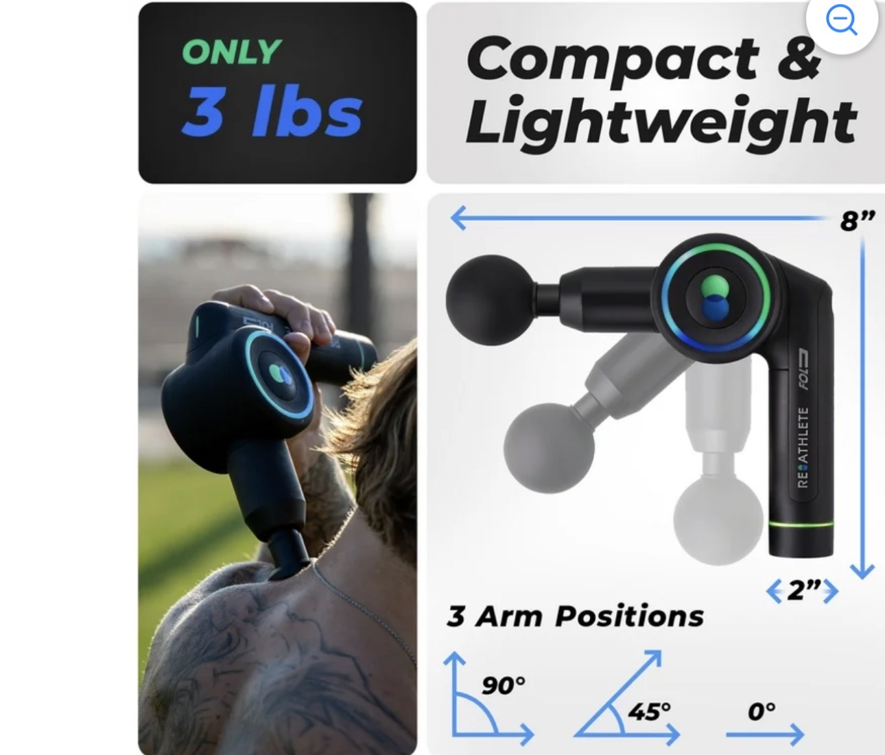 این ماساژور ReAthlete FOLD یه انتخاب عالی برای وقتیست که بعد از تمرین یا یک روز سخت بدنت خسته شده. طراحی تاشو باعث میشه راحت حملش کنی و تو خونه، باشگاه یا سفر ازش استفاده کنی. ۵ سری مختلفش هم کمک میکنه هر عضلهای رو بهبهترین شکل ماساژ بدی — از پشت و شانه تا پا و ساق